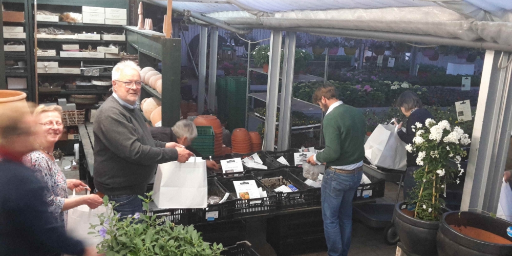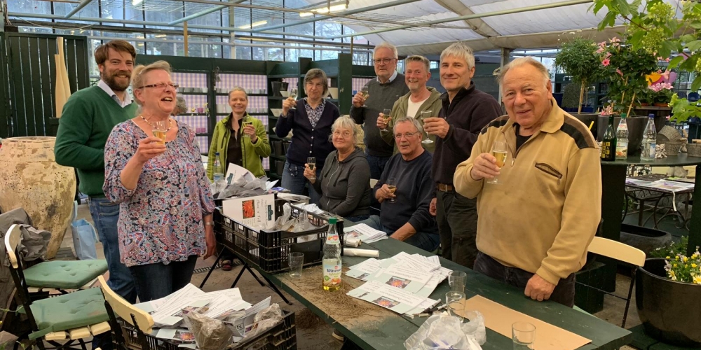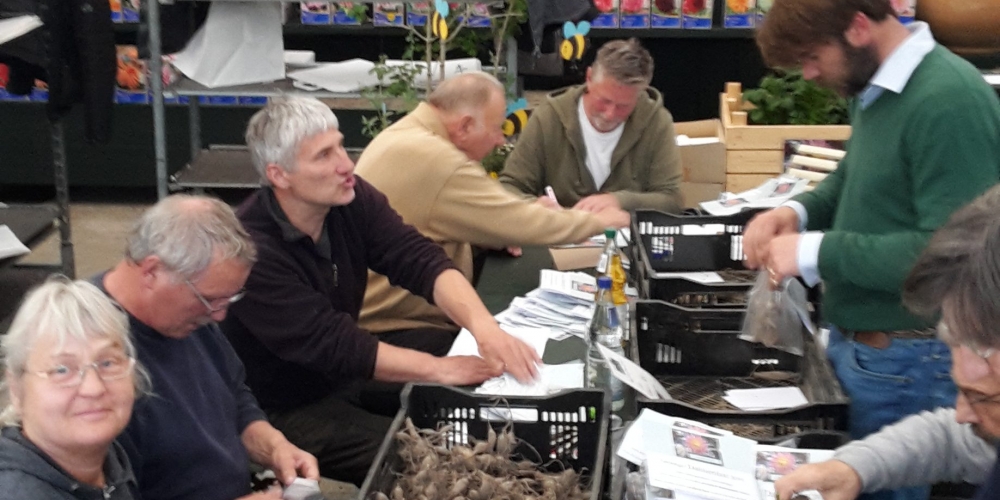 In der Gärtnerei F. Tischler haben Komitee und Helfer 800 Dahlien für den Wettbewerb „Schönste Vorgartendahlie“ nummeriert