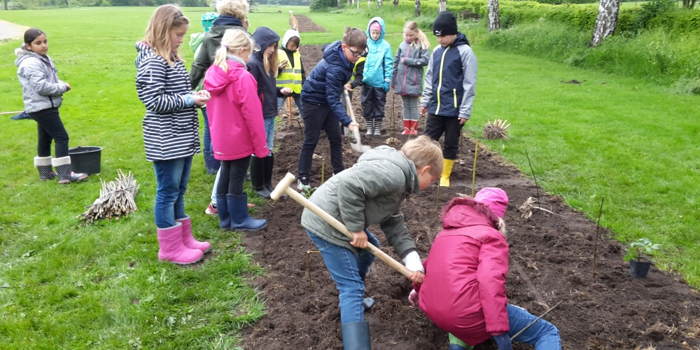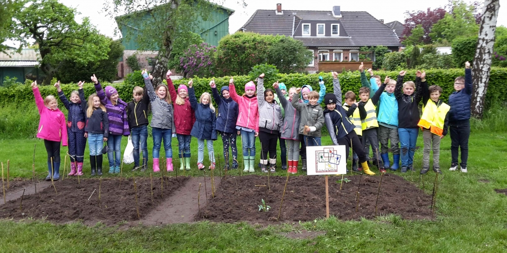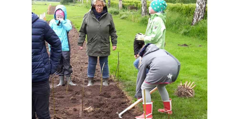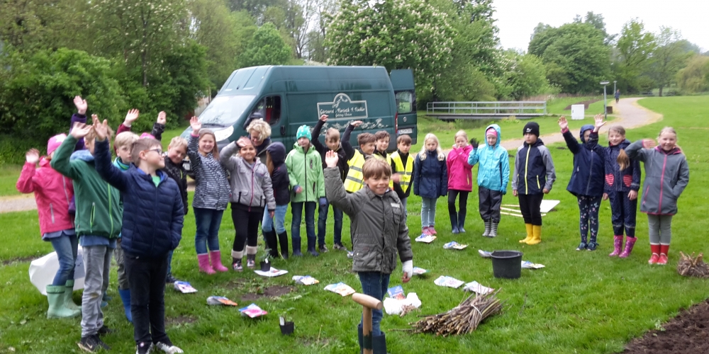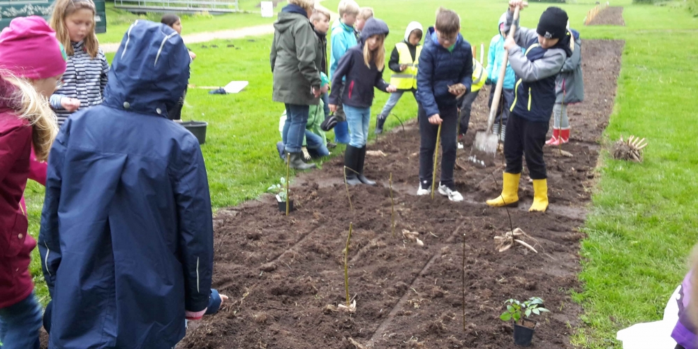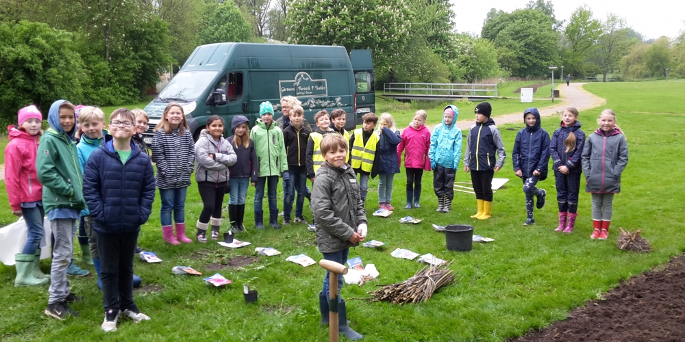 Die Georg Asmussen Schule Gelting pflanzt ihr eigenes Beet im Bürgerpark unter der Anleitung von Gärtnerei F. Tischler. Verschiede Formen und Größen, Dahlien und Bienen, Pflanzen und Pflegen waren die Themen, 22. Mai