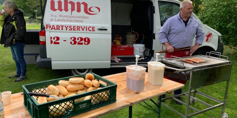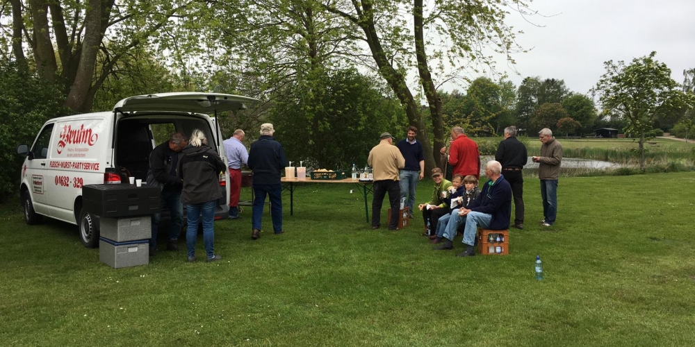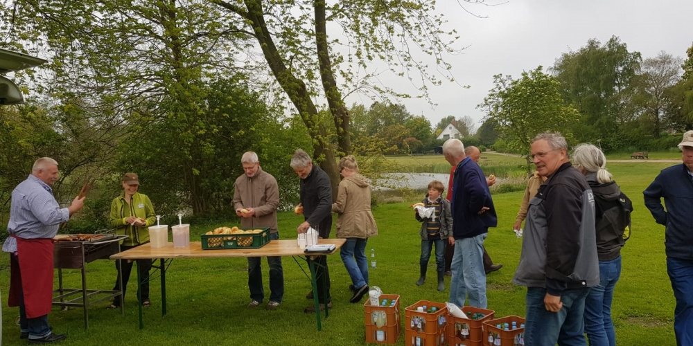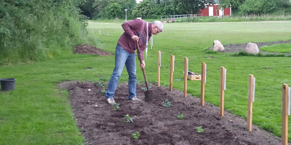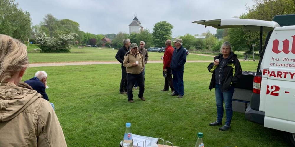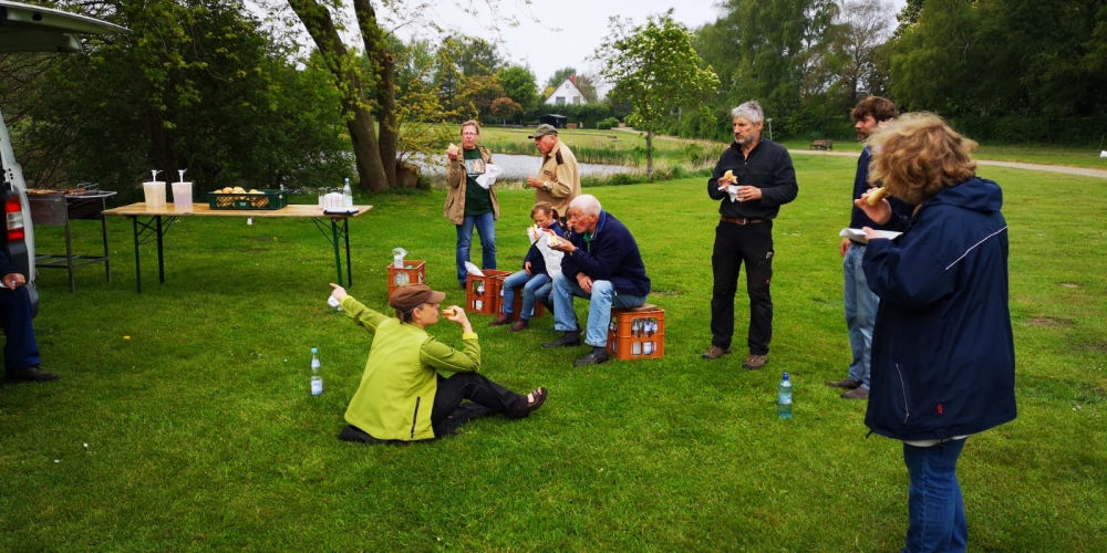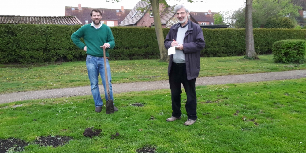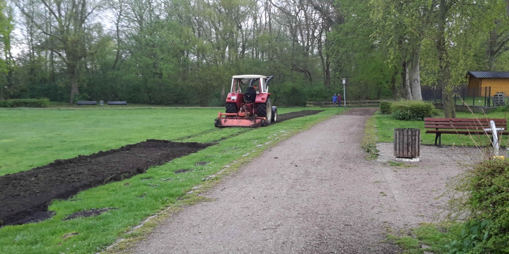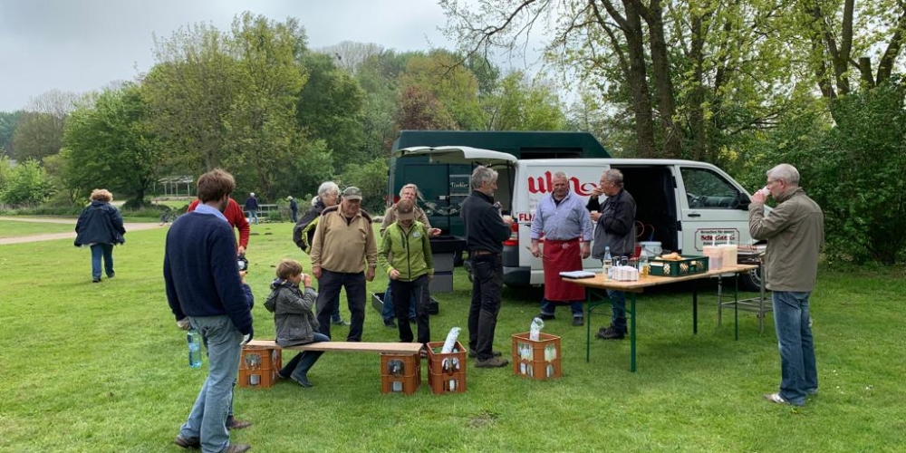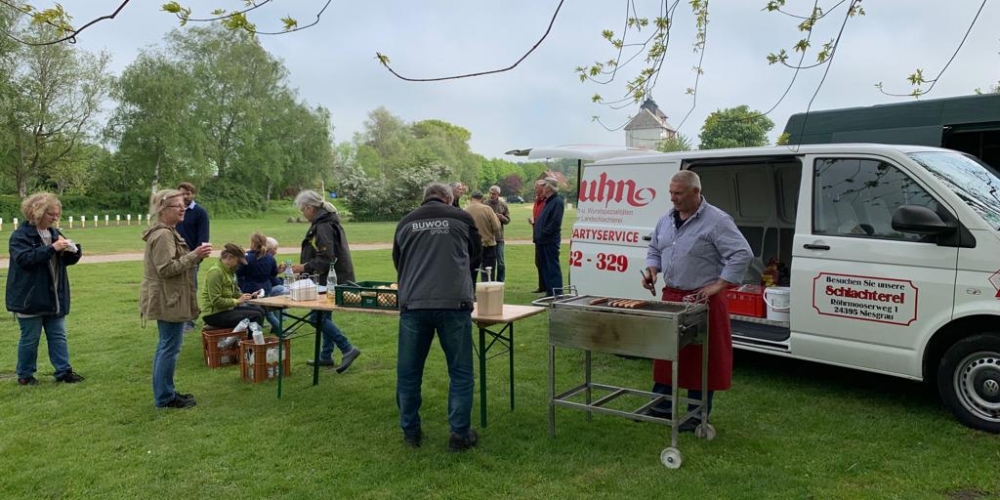 Die ersten Dahlien werden als Knollen im Bürgerpark gepflanzt . Nach dem fleißigen Graben gibt es Getränke und Gegrilltes, die Sponsoren sind: Getränkemarkt S. Führer und Schlachterei Bruhn.