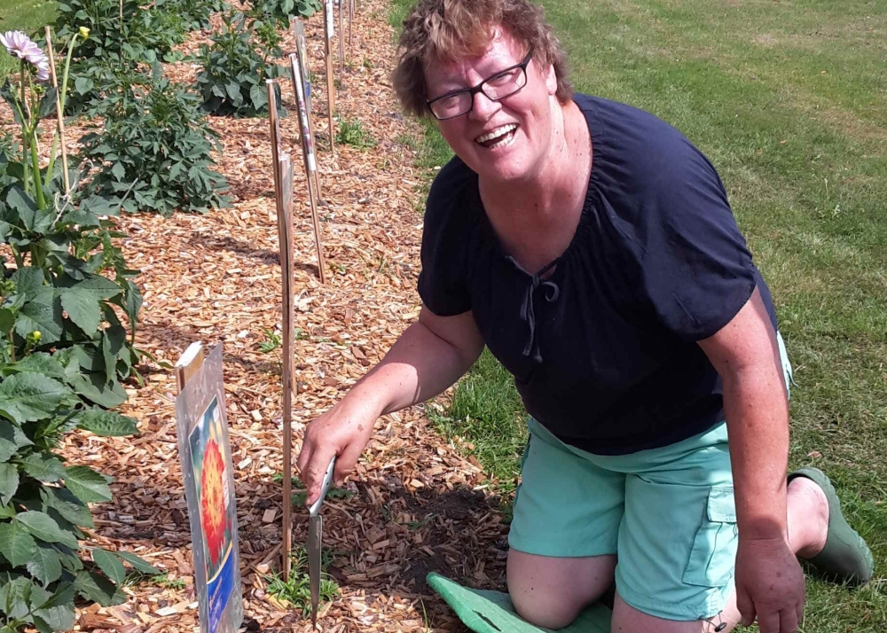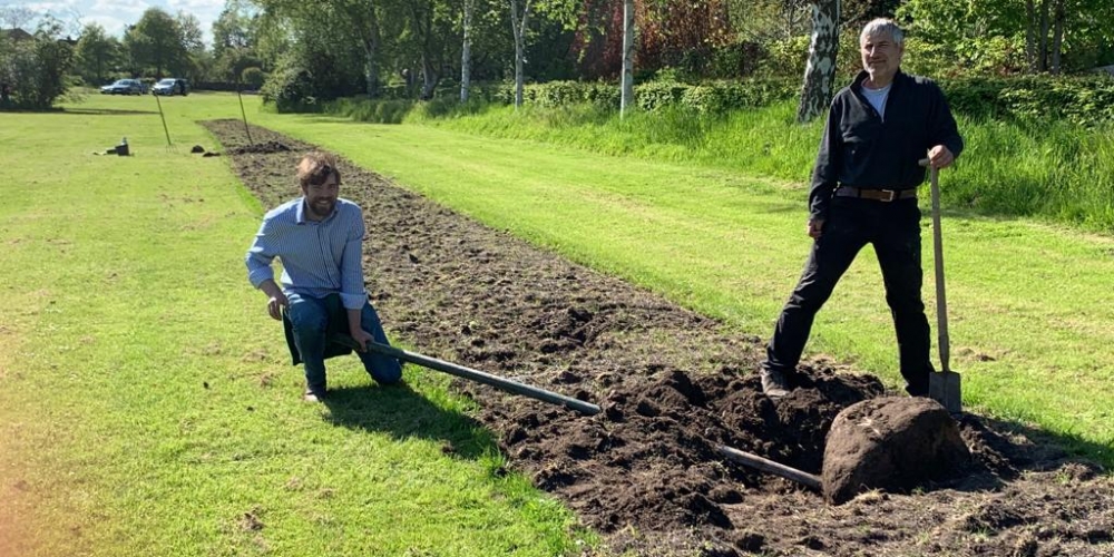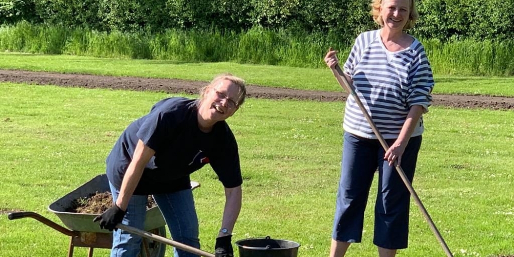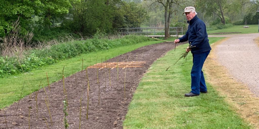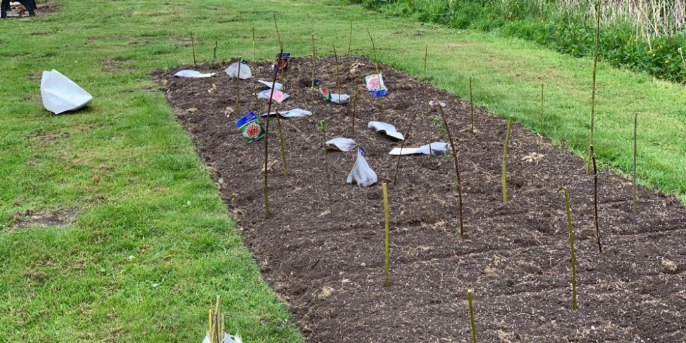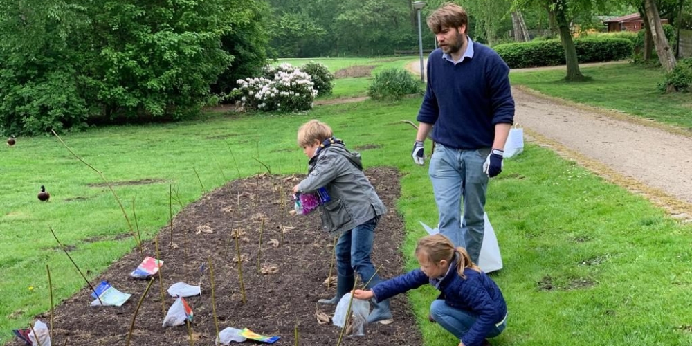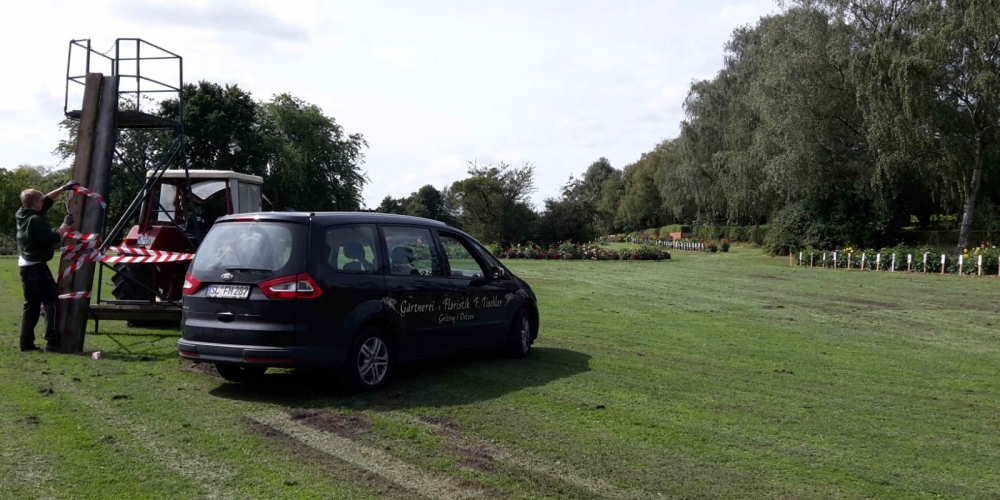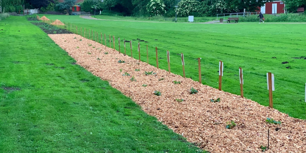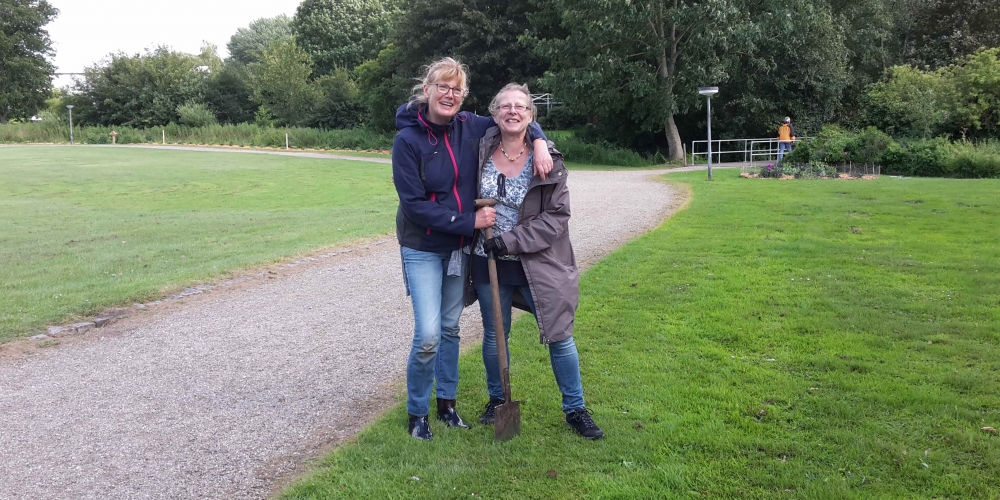 Das Pflanzteam ist zur Kontrolle im Bürgerpark und pflanzt die letzten Dahlien in entstandene Lücken. Die Kaninchen hatten da wohl mal probiert, 6. Juli