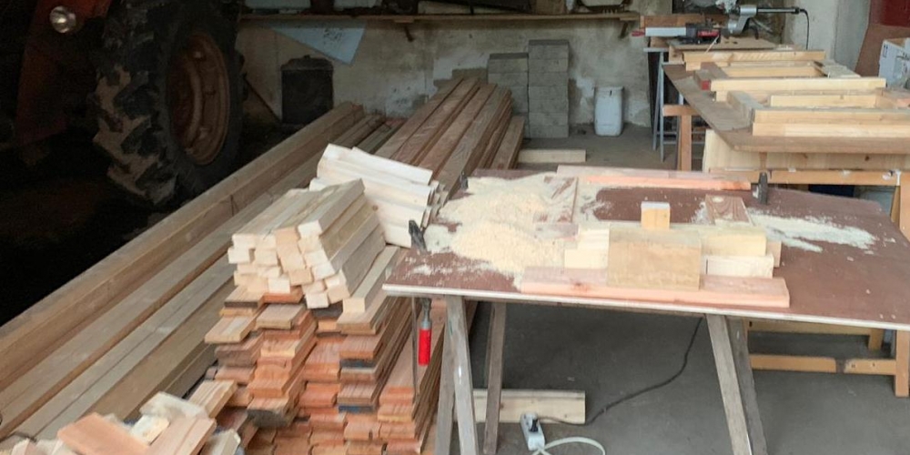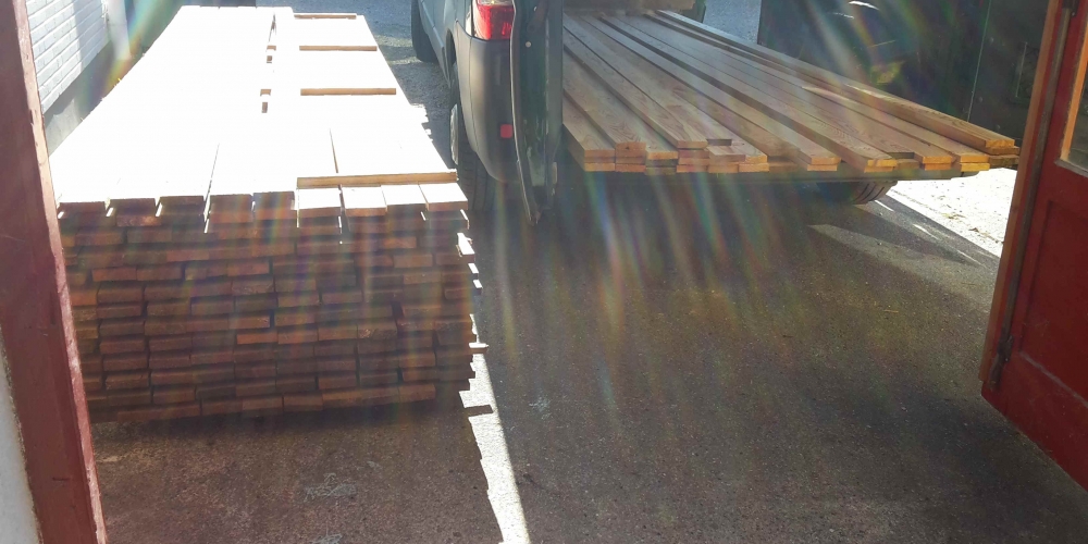 Für die Geplanten 60 Pflanzkübel, die im Dorf verteilt werden sollen wird das Holz vorbereitet. Sonor für des Holz : Sägewerk Mangelsen