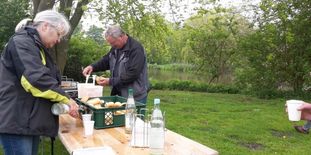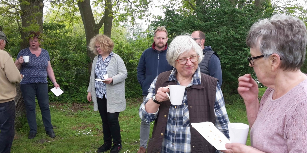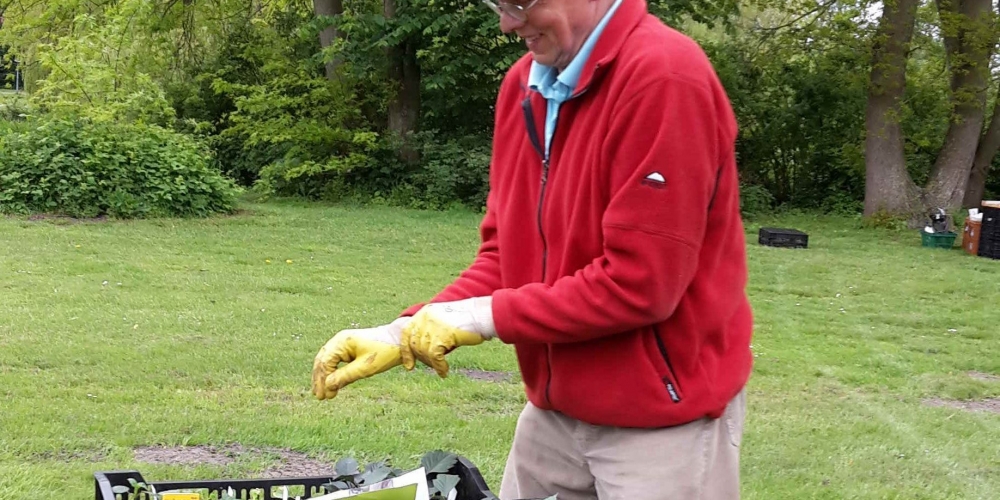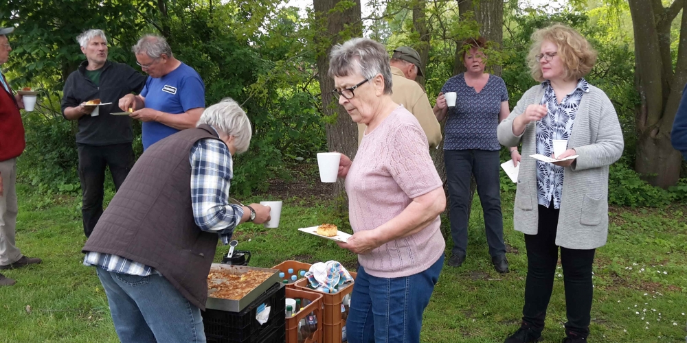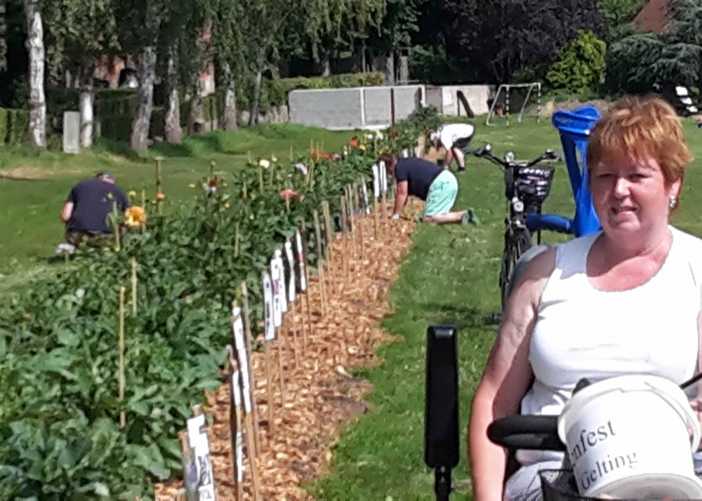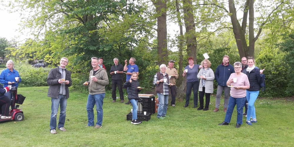 Die zweite Serie Dahlien wurde gepflanzt , dieses Mal sind es schon Pflanzen. Zur Stärkung gibt es Kaffee und Kuchen gesponsert von Bäckerei Cord Petersen, 25. Mai