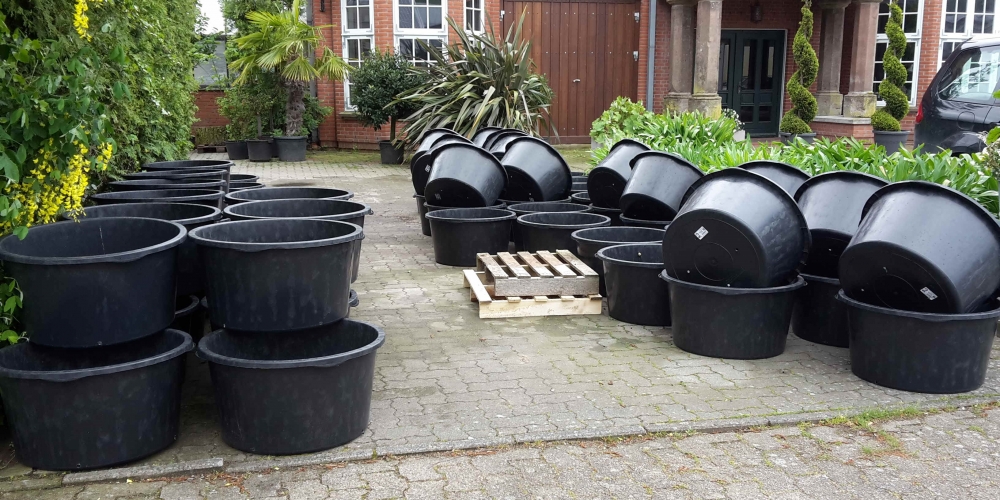 Der heißeste Tag des Jahres und unermütlich wurden die ersten 30 Pflanzkübel in Geltings nördlichen Straßen verteilt. Beschriftet mit den Sponsoren der Pflanzungen, zeigen sie die starke Beteiligung der Geschäfte und Bevölkerung; ohne diese gäbe es keine Kübel: Vielen Dank dafür! 29. Juni