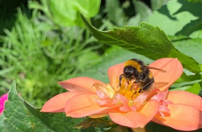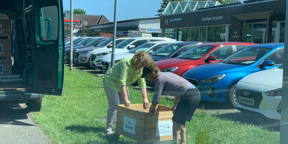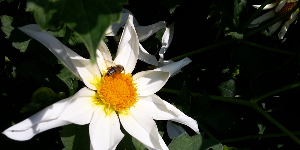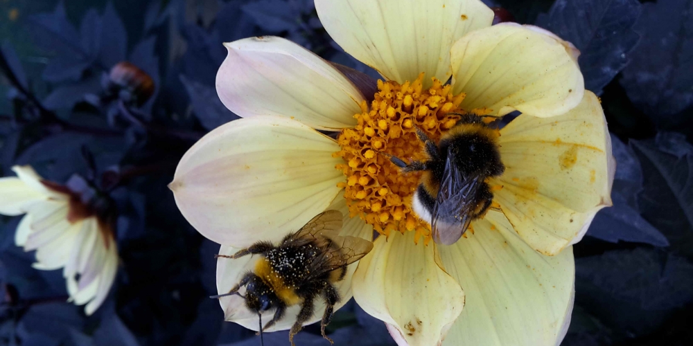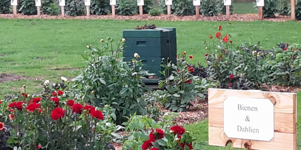 Die Bienen und Insekten erfreuen sich an den Dahlien und ein Bienenvolk von Imker Jens Husfeld erhält Einzug in den Bürgerpark, 6. August