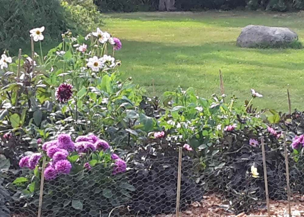 Die letzten Dahlien werden gepflanzt. Vor allem der Dahlienlehrpfad wird nun mit den einzelnen Sorten vervollständigt, ca 133 Sorten sind es bis dato. Hier wird zum Dahlienfest ein Quiz stattfinden, 4. Juni