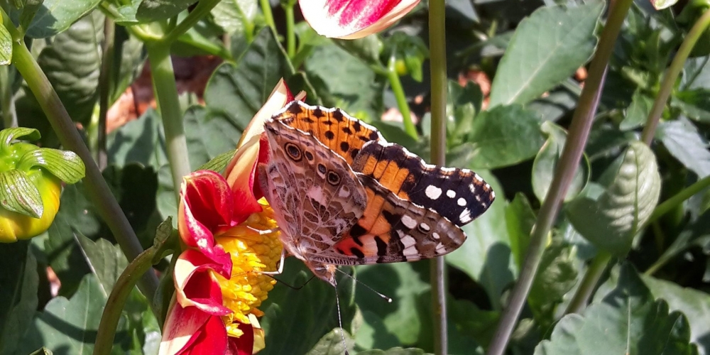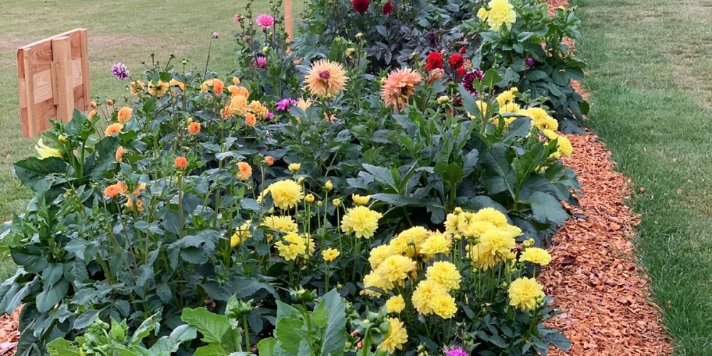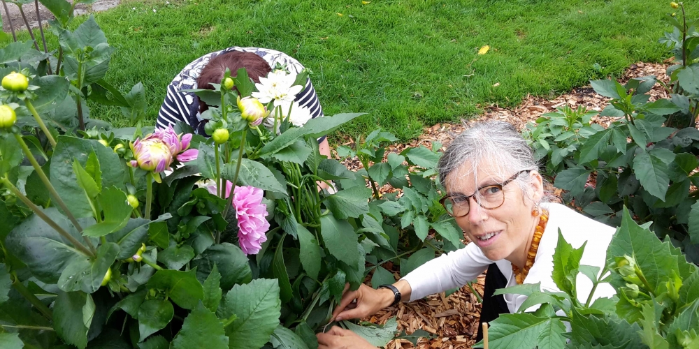 Das Pflanzteam hat viel Freude an den Dahlien. Die ersten blühen und es sind nur kleine Arbeiten nötig, z.B. stützen der hohen Dahliensorten und etwas Unkraut entfernen. Der Boden ist trotz der trockenen Witterung noch feucht genug, 27. Juli