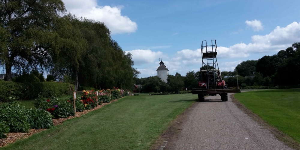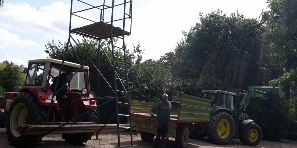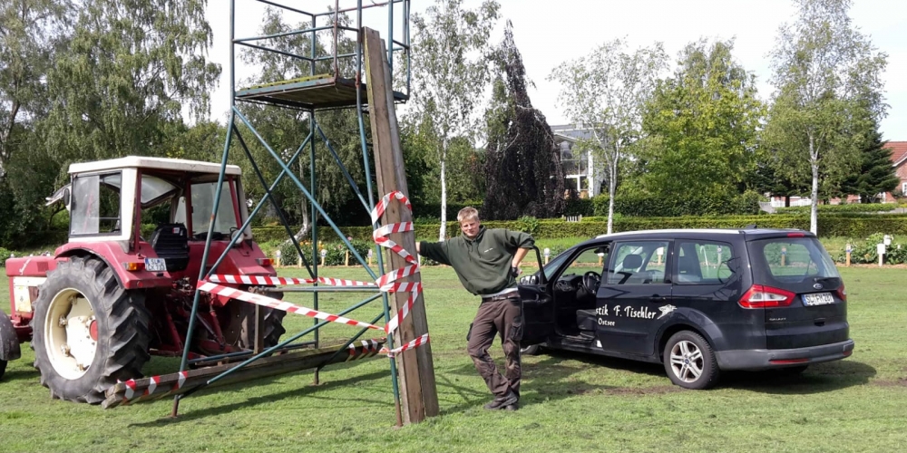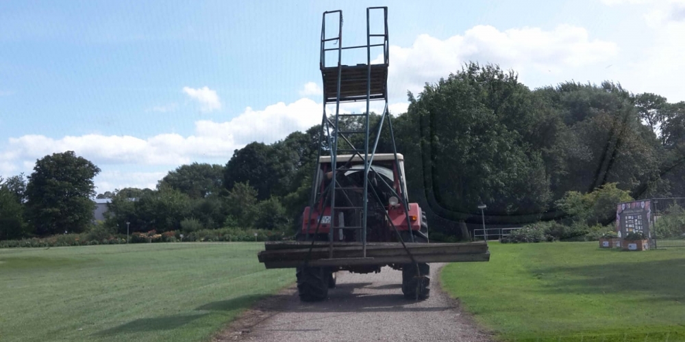 Anlässlich des Dahlienfestes wird ein Hochsitz im Bürgerpark aufgestellt, so bieten sich schöne Fotomotive aus erhöhter Position, 16. August
